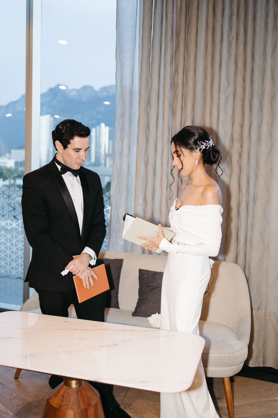 Leer el wedding journal de La Vita Quotidiana en pareja nos ayudó a platicar temas del matrimonio que no nos habían pasado por la mente. La interacción de preguntas que nos hicimos fue muy divertida ya que nos hizo ver una parte de cada uno que no conocíamos. También me encantó la sección de la gratitud, ya que te hace reflexionar sobre todo lo que tenemos y lo afortunados que somos en la vida. Por último los ejercicios y preparación que te dan para escribir los votos sin duda fue de gran ayuda e inspiración. Estamos listos para seguir escribiendo nuestra historia en nuestro journal.